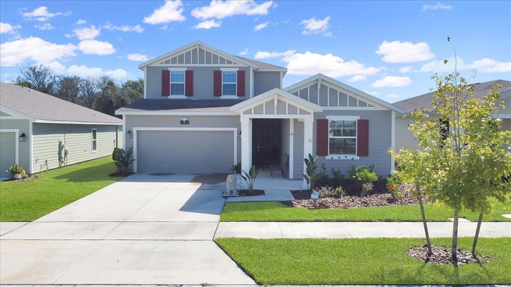 For those who may not be familiar with the BAXTER come walk with me through this spacious home, which has been maintained to a very high standard by the current owners. As you approach this imposing home you will notice the pretty bedding plants, mowed lawn (included in HOA fees), the double garage with parking for two more vehicles on the drive and the long covered entrance porch. The GEN-X suite can be accessed through its own front door to the right and the main home front door directly ahead, fitted with a RING doorbell. Upon entering the home you are in the spacious entrance foyer with an interior door to the GEN-X suite on your right. To the left leads to the separate laundry room and from there the garage, bedroom 2 and a family bathroom. Continuing through you will come to the kitchen on the right with 42" cabinets, QUARTZ countertops with under mount deep double sinks, the island extends to enable an extra eating area. To the left is the dining area and to the right is the great room with sliders to the covered, screened in patio area and a stunning view of the water and conservation area beyond. Just the place to relax after a busy day. No rear neighbors being an added bonus. To the left of the great room is the master suite with 2 closets one of which is a true walk in, plus the en suite bathroom with two vanities, QUARTZ countertop also with under mount sink, a walk in shower and separate water closet. Upstairs is the loft area, two further bedrooms and a family bathroom. Back down stairs the GEN-X suite has a fitted kitchenette/dining/living area, bathroom with shower over the tub, vanity and water closet. A separate closet houses the washer/dryer for this unit with the bedroom located at the front of the home. This home is an excellent option for a multi generation family or even if you want a separate office when working from home.